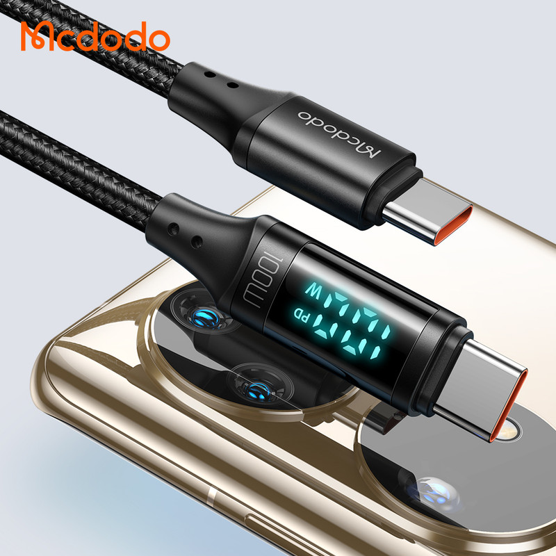 کابل USB-C مک دودو مدل Digital HD 100W PD Fast Charge طول 1.2 متر دارای روکش کنفی مقاوم و شکیل میباشد.این کابل دارای نشانگر دیجیتال میزان خروجی توان برق است که کاربر را در هر زمان متوجه توان شارژ میکند.کابل مک دودو دارای توان 100Wو حداکثر تا 5 آمپر جریان را دارد که می تواند از همه دستگاهها با توان و جریان پایین تر نیز بخاطر چیپ هوشمند مک دودو پشتیبانی نماید.کابل نایلونی بافته شده قوی و بادوام با بدنه شیلد آلیاژ آلومینیوم با کیفیت بالا، کابلی با کلاس بالا به ارمغان می آورد.این کابل علاوه بر شارژ انتقال دیتا با نرخ 480 مگابیت بر ثانیه را نیز انجام میدهد.